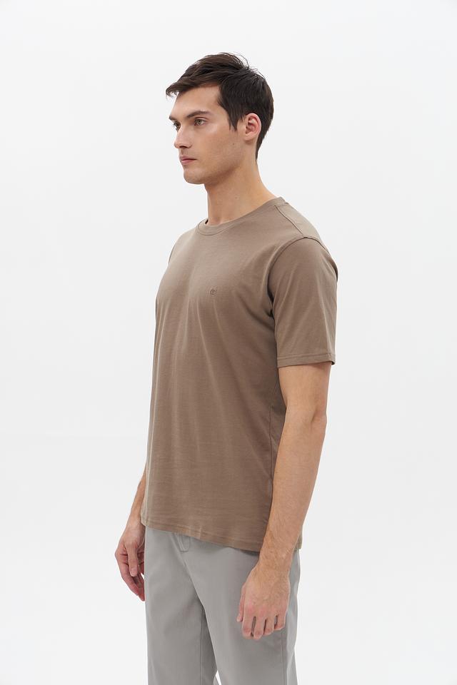Футболка имеет короткий рукав и круглый вырез горловины. Отсутствие ярких деталей и принтов делает ее универсальной и подходящей для создания различных образов. Небольшой логотип бренда, расположенный на груди, добавляет сдержанности и стиля.