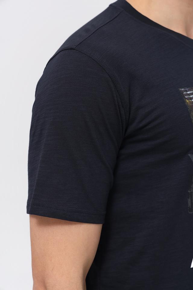Чёрная футболка Casa Moda с оригинальным принтом на лицевой стороне. Изготовлена из 100% хлопка, обеспечивающего комфорт и воздухопроницаемость. Стильный и универсальный вариант для повседневного образа. Состав: хлопок 100%