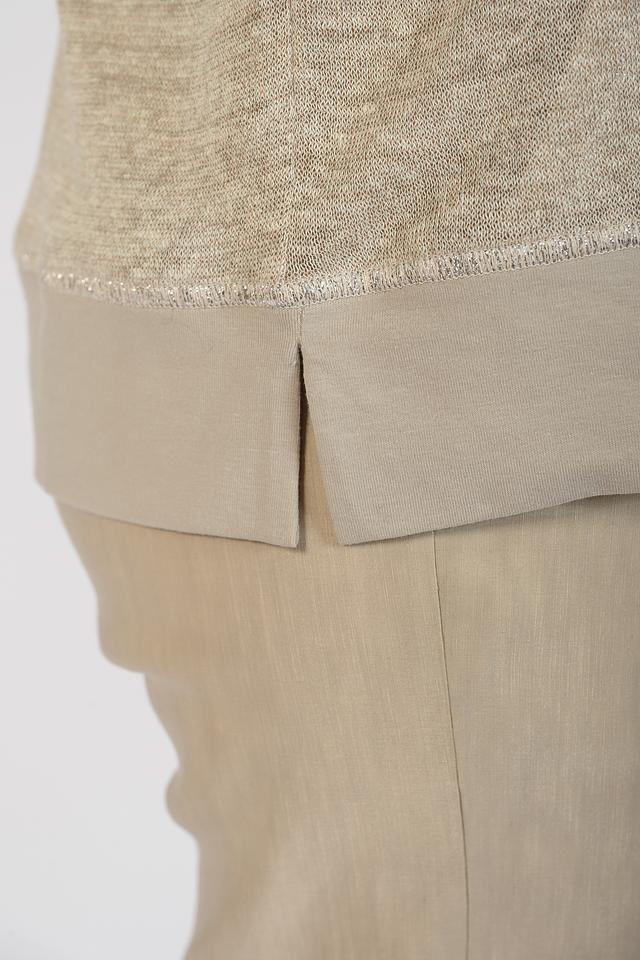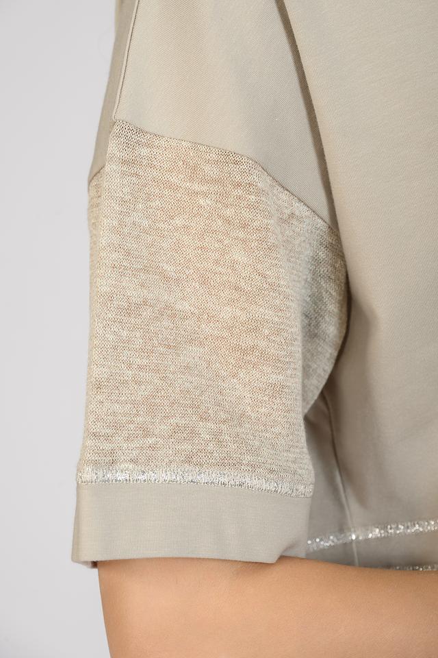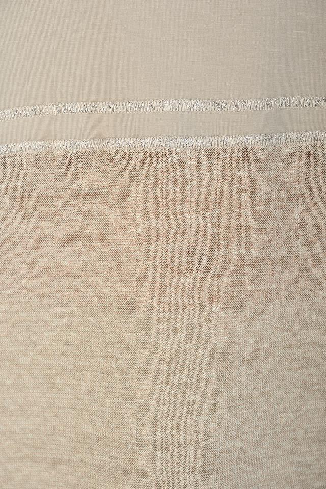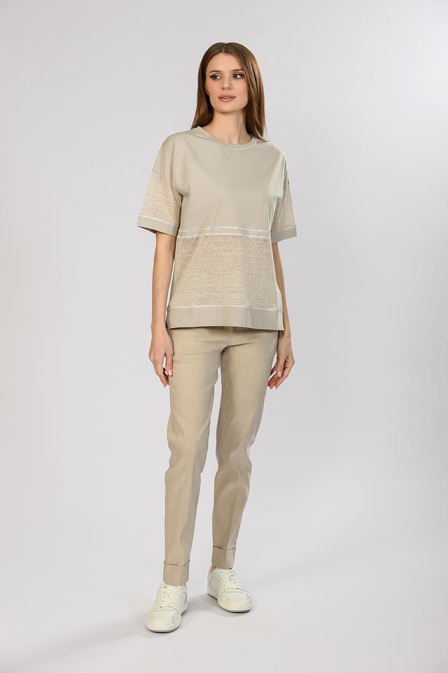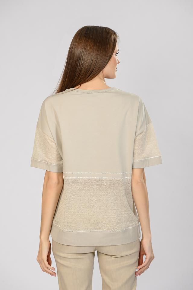 Женская футболка D. Exterior бежевого цвета с комбинированной фактурой. Модель выполнена из льна и полиэстера, имеет свободный крой и короткий рукав. Состав: лен 85%, полиэстер 15%