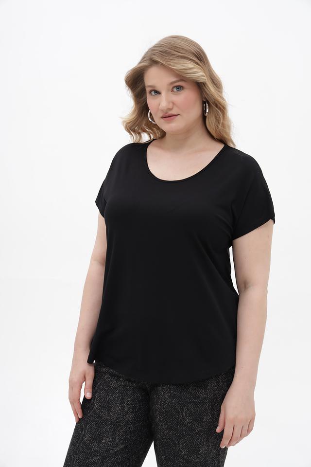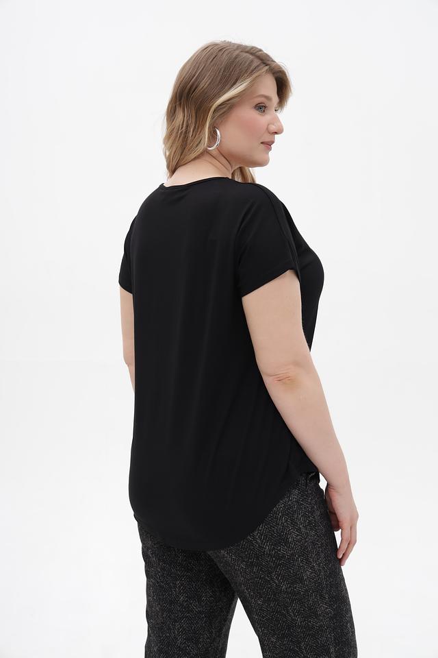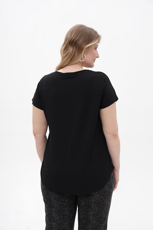 Чёрная футболка от бренда Doris Streich – это идеальный выбор для создания повседневного и комфортного образа.