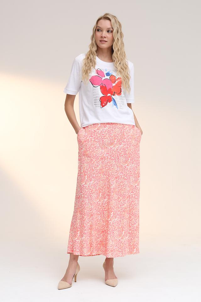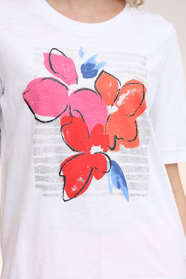 Белая футболка Gerry Weber с ярким цветочным принтом – стильное и комфортное решение для повседневного образа. Изготовлена из мягкого хлопка с модалом, обеспечивающего приятные ощущения на коже. Состав: хлопок 50%, модал 50%