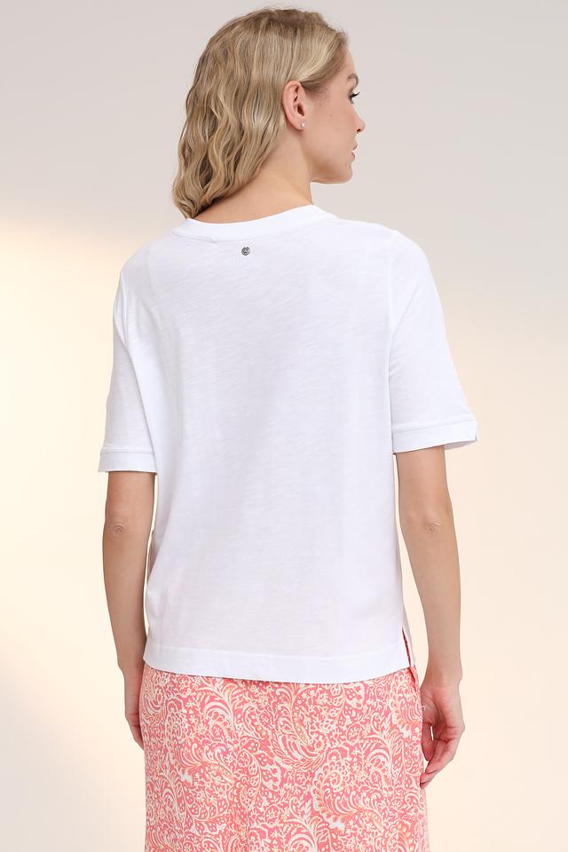 Эта футболка от Gerry Weber станет прекрасным дополнением к вашему гардеробу. Она выполнена в белом цвете и украшена эффектным цветочным принтом, выполненным в ярких оттенках розового, красного и голубого.