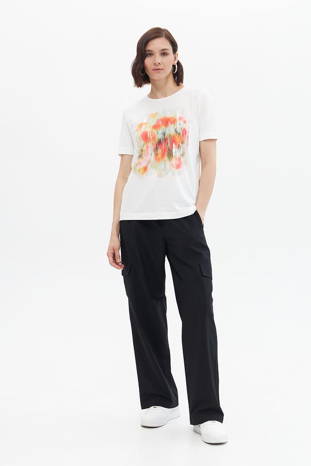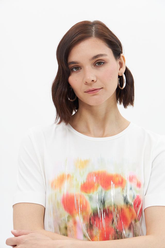 Белая футболка Gerry Weber с ярким абстрактным принтом – стильное и комфортное решение для повседневного образа. Изготовлена из мягкого хлопка с добавлением модала и эластана, обеспечивающих приятные тактильные ощущения и хорошую посадку. Состав: хлопок 47%, модал 47%, эластан 6%