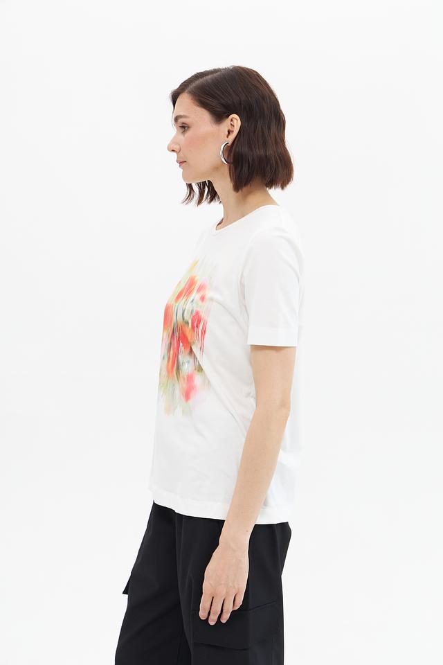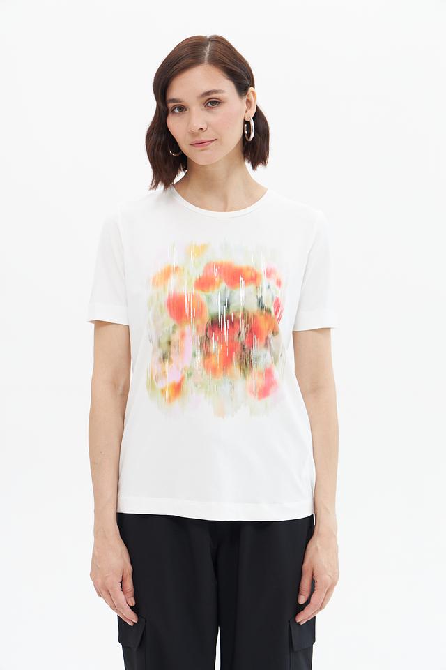 Эта футболка от Gerry Weber станет отличным дополнением к вашему гардеробу. Она выполнена в белом цвете и украшена оригинальным абстрактным принтом, выполненным в ярких оранжевых, розовых и зеленых тонах.