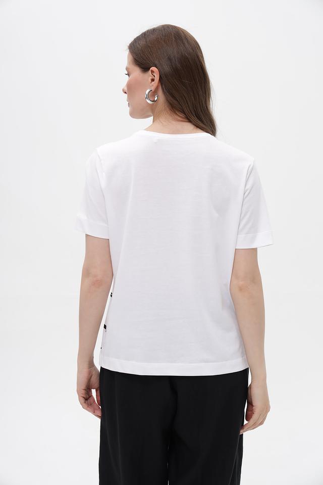 Эта футболка идеально сочетается с джинсами, брюками, юбками и шортами, позволяя создавать разнообразные образы. Она станет незаменимой вещью в вашем повседневном гардеробе.