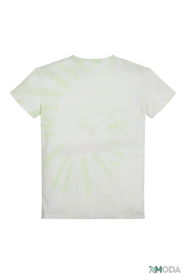 Эта яркая и стильная футболка от Guess станет отличным дополнением к гардеробу вашей девочки. Футболка выполнена в технике тай-дай, сочетающей нежные оттенки лайма и белого, что придает ей уникальный и модный вид.