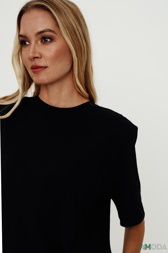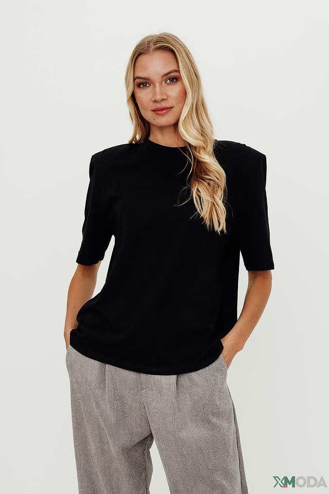 Чёрная женская футболка Icona с акцентными плечами – стильная и комфортная базовая вещь. Изготовлена из 100% хлопка, обеспечивающего приятные ощущения при носке. Подчеркнёт индивидуальность вашего образа. Состав: хлопок 100%