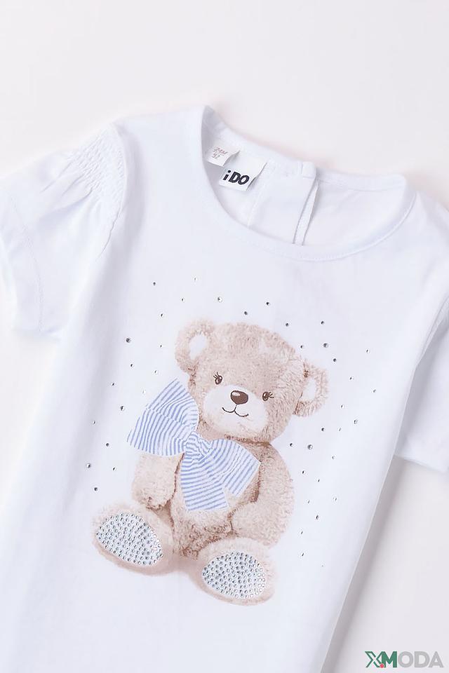 Белая футболка Ido для девочки с очаровательным принтом мишки. Изготовлена из 100% хлопка, обеспечивая комфорт и удобство в носке. Прекрасный выбор для повседневной носки. Состав: хлопок 100%