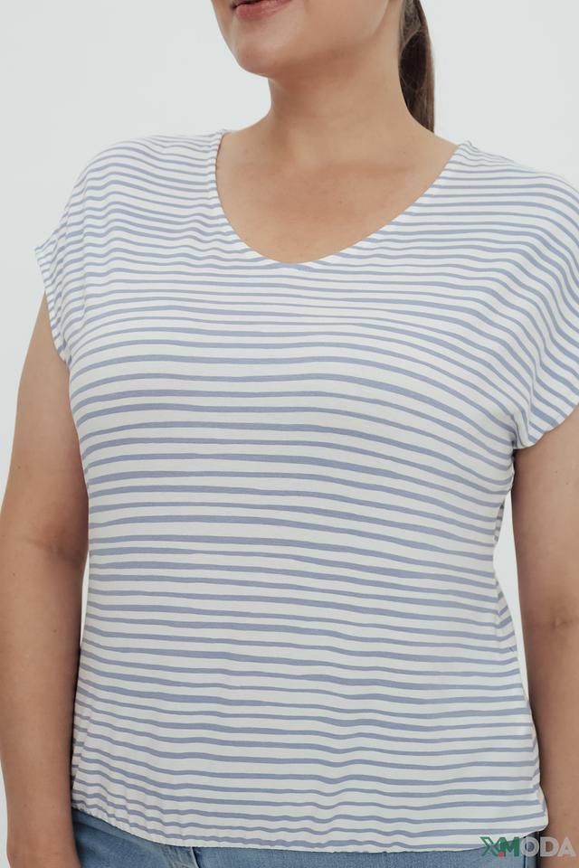 Женская футболка Lebek голубого и белого цвета в классическую полоску. Модель выполнена из мягкой вискозы с добавлением эластана, обеспечивающего комфортную посадку. Футболка идеально подойдет для создания повседневных образов. Состав: вискоза 95%, эластан 5%