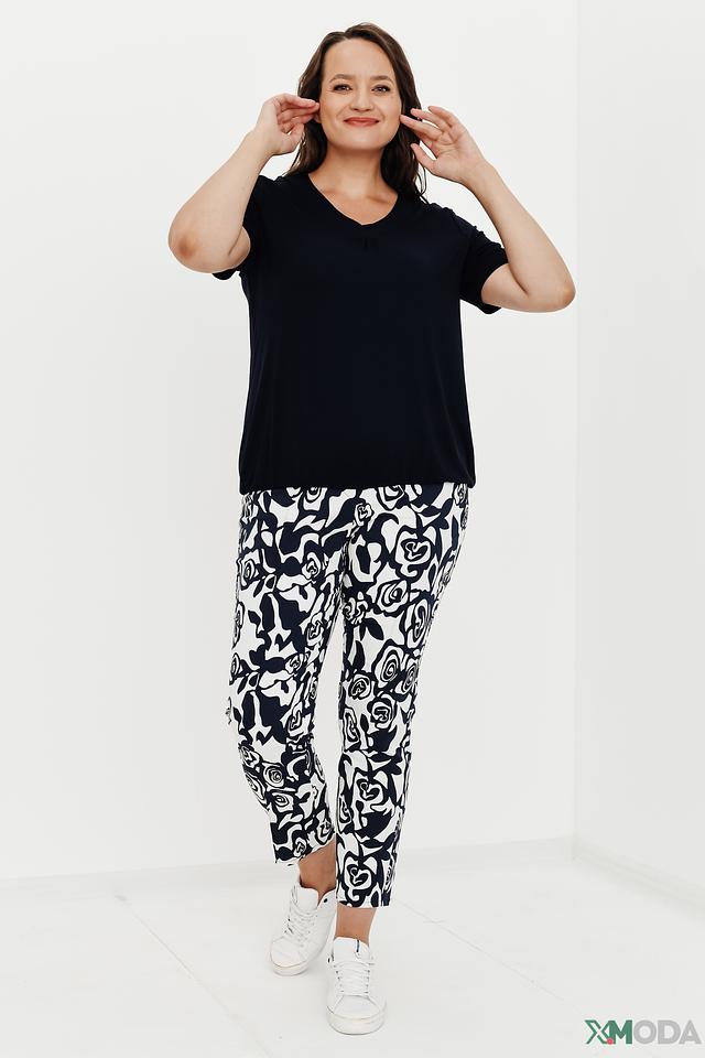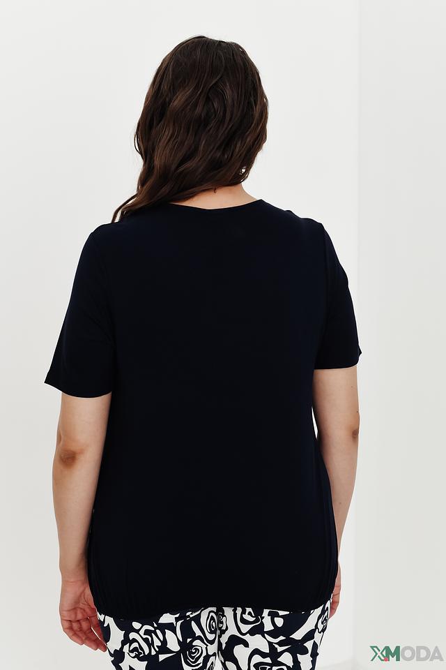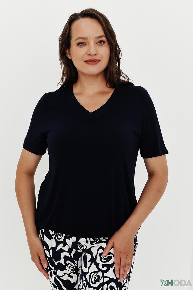 Футболка имеет прямой, слегка свободный крой, который не сковывает движения. Короткие рукава делают её идеальным выбором для тёплой погоды. Состав ткани: 95% вискоза, 5% эластан.