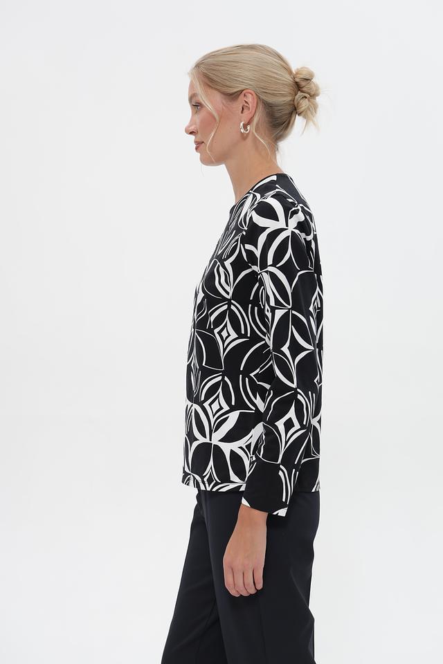 Женская футболка Barbara Lebek чёрного цвета с оригинальным геометрическим принтом. Модель выполнена из мягкого хлопка с добавлением модала для комфорта и приятных тактильных ощущений. Состав: хлопок 95%, модал 5%