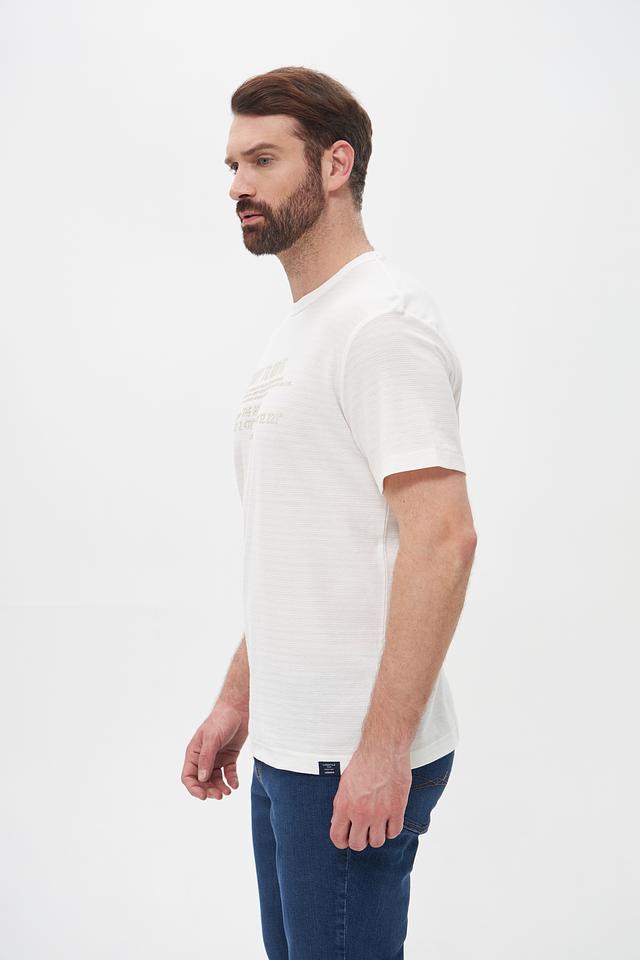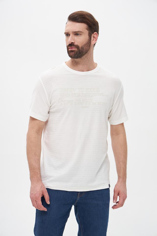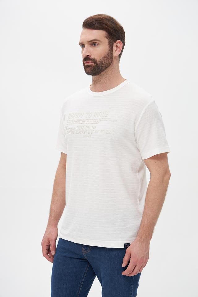 Белая футболка Lerros с фактурной текстурой и принтом на груди. Изготовлена из 100% хлопка, обеспечивающего комфорт и воздухопроницаемость. Стильный и универсальный вариант для повседневного образа. Состав: хлопок 100%
