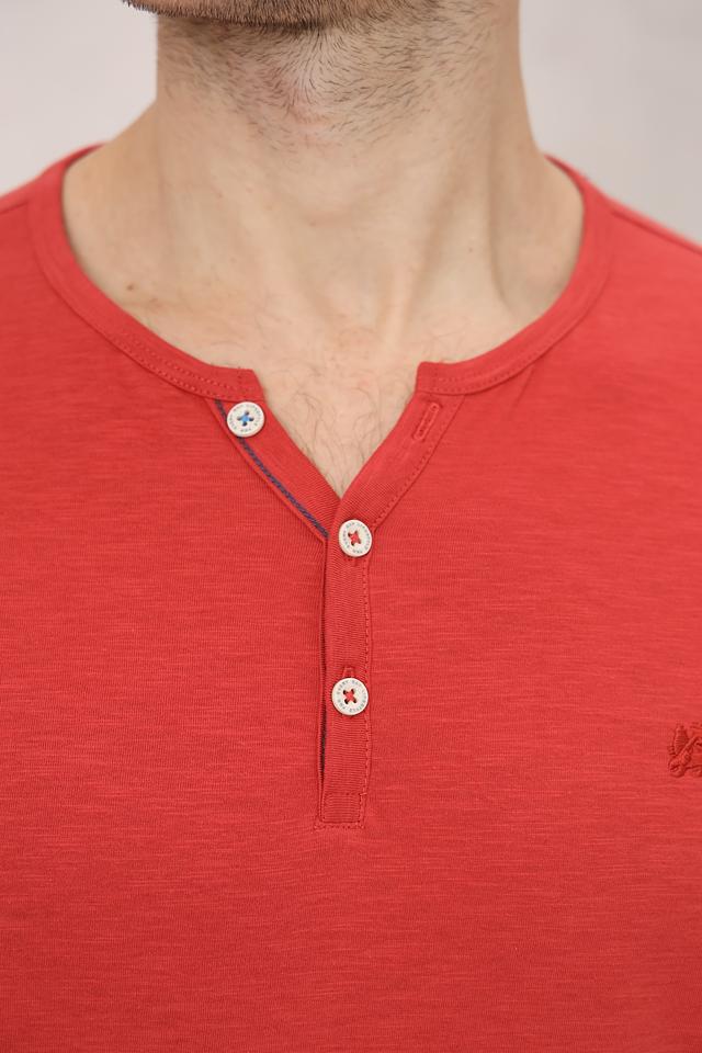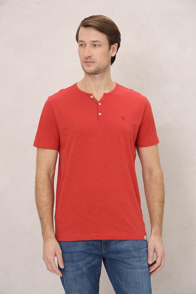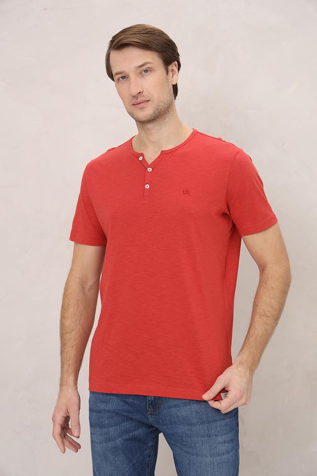 Мужская футболка Lerros красного цвета с планкой на пуговицах. Изготовлена из 100% хлопка, обеспечивающего комфорт и воздухопроницаемость. Отличный выбор для повседневного образа. Состав: хлопок 100%