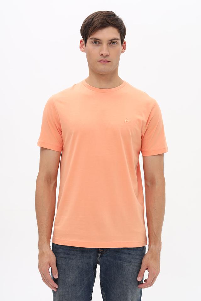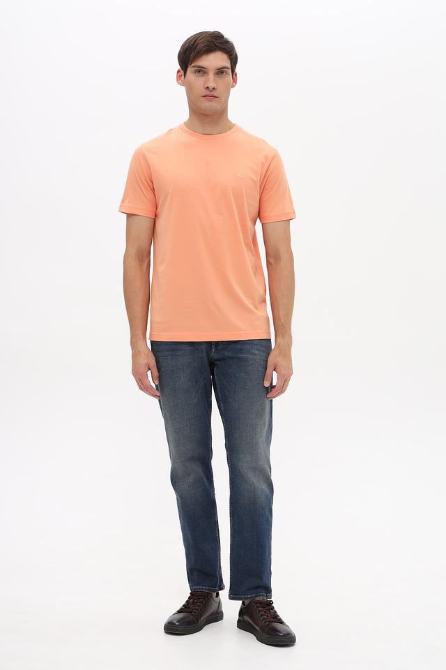 Футболка имеет классический прямой крой, обеспечивающий комфортную посадку по фигуре. Изготовлена из 100% хлопка, что гарантирует мягкость, приятные тактильные ощущения и отличную воздухопроницаемость. Небольшой вышитый логотип бренда на груди добавляет лаконичности и стиля.