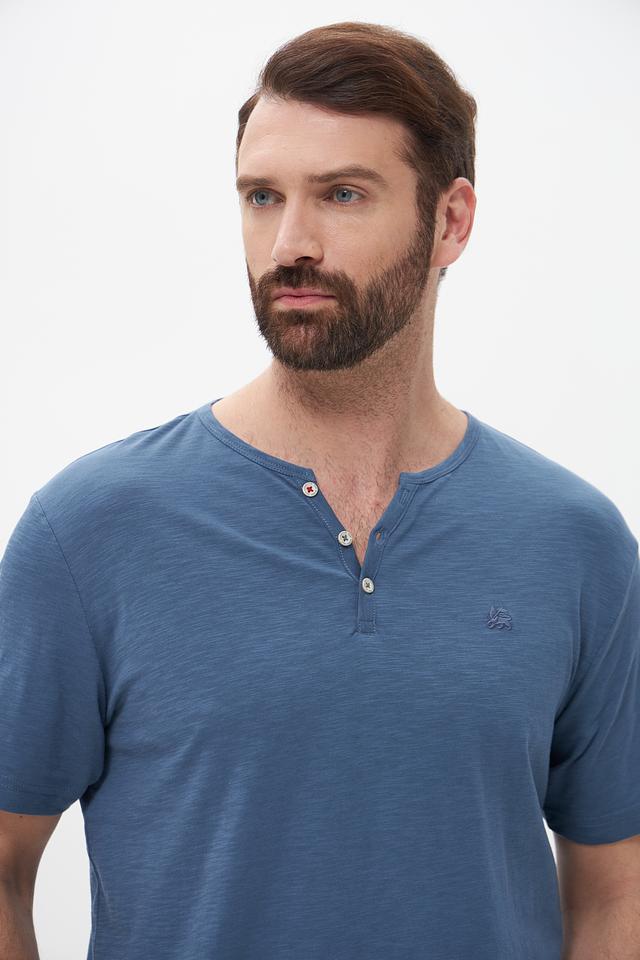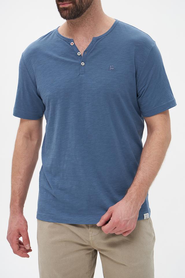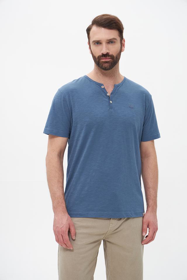 Мужская футболка Lerros голубого цвета с короткий рукавом и планкой на пуговицах. Изготовлена из 100% хлопка, обеспечивающего комфорт и воздухопроницаемость. Отличный выбор для повседневного образа. Состав: хлопок 100%