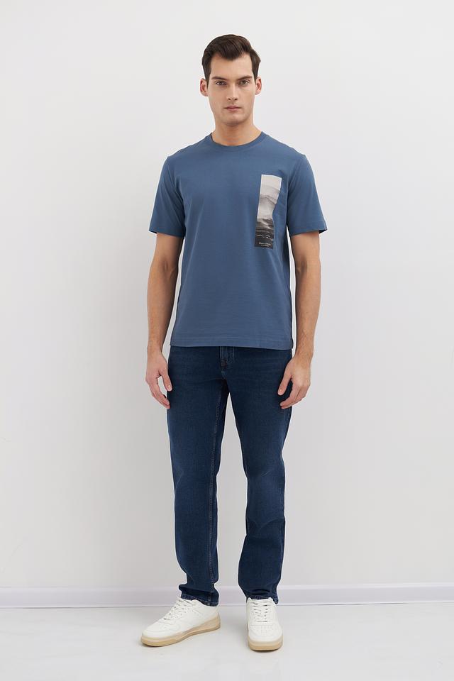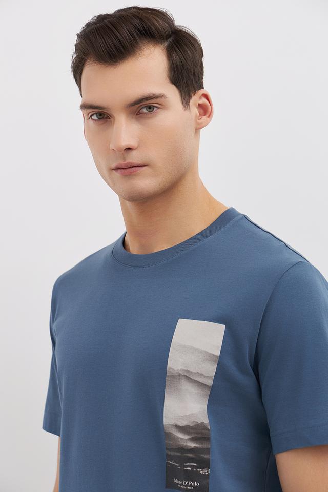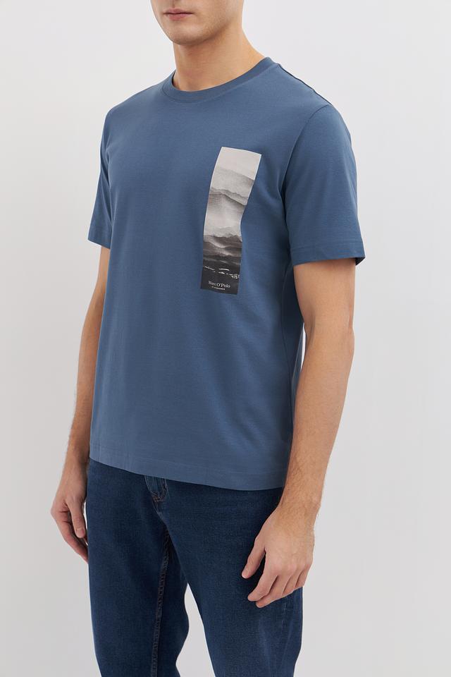 Мужская футболка Marc O Polo голубого цвета с оригинальным принтом на груди. Изготовлена из 100% хлопка, обеспечивающего комфорт и воздухопроницаемость. Стильный и лаконичный дизайн. Состав: хлопок 100%