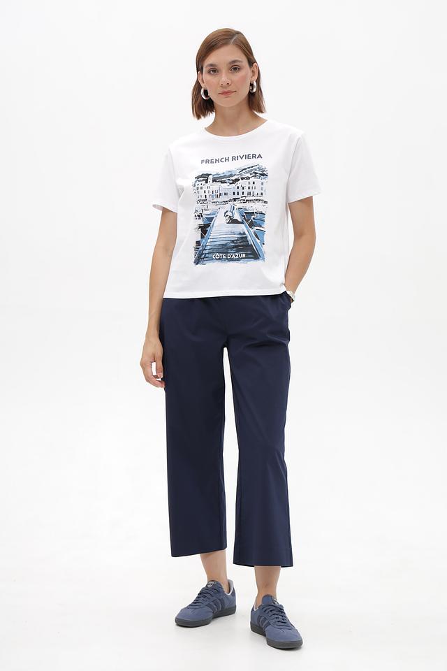 Белая футболка Monari с ярким принтом в стиле French Riviera. Изготовлена из 100% хлопка, обеспечивающего комфорт в носке. Идеальный выбор для создания непринужденного летнего образа. Состав: хлопок 100%