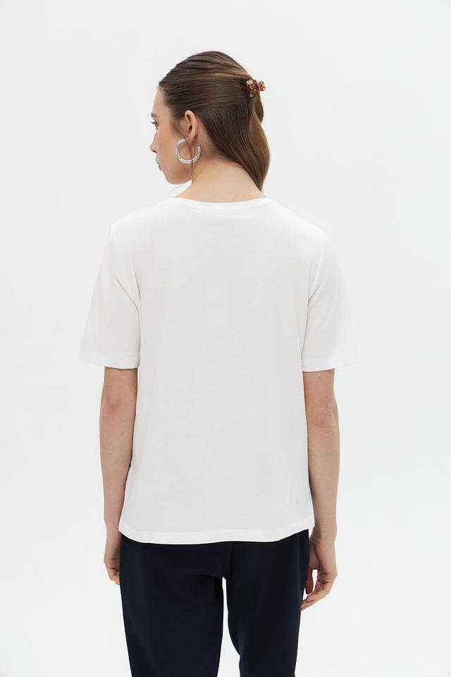 Модель имеет классический прямой крой, короткие рукава и круглый вырез горловины. Футболка изготовлена из высококачественного материала – 50% хлопка и 50% модала, что обеспечивает комфорт, воздухопроницаемость и приятные тактильные ощущения.