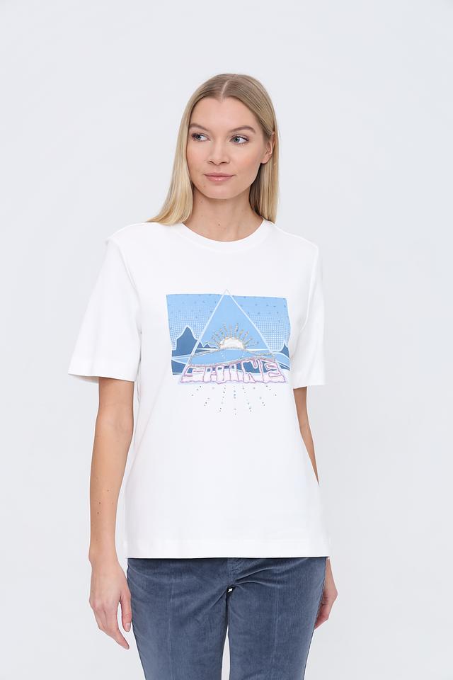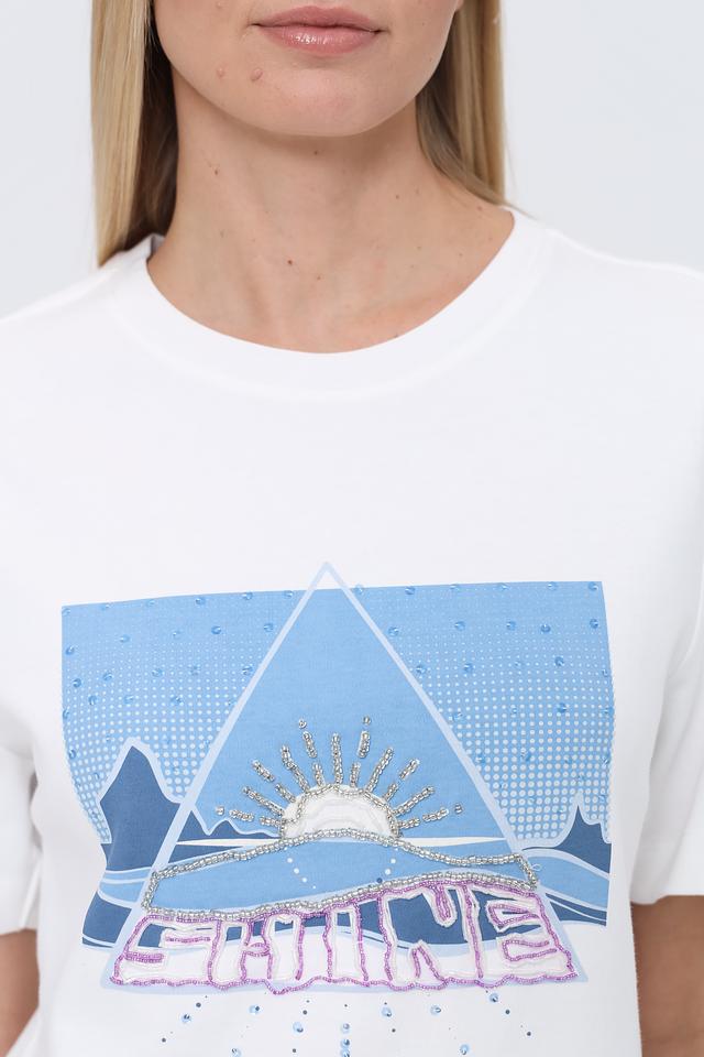 Белая футболка Oui с ярким принтом "Shine" добавит образу оригинальности. Модель из 100% хлопка обеспечивает комфорт и воздухопроницаемость. Состав: хлопок 100%