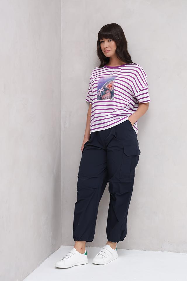 Эта футболка прекрасно сочетается с джинсами, шортами, юбками и брюками, позволяя создавать разнообразные образы на каждый день.