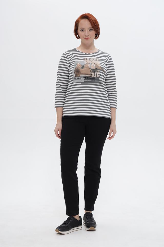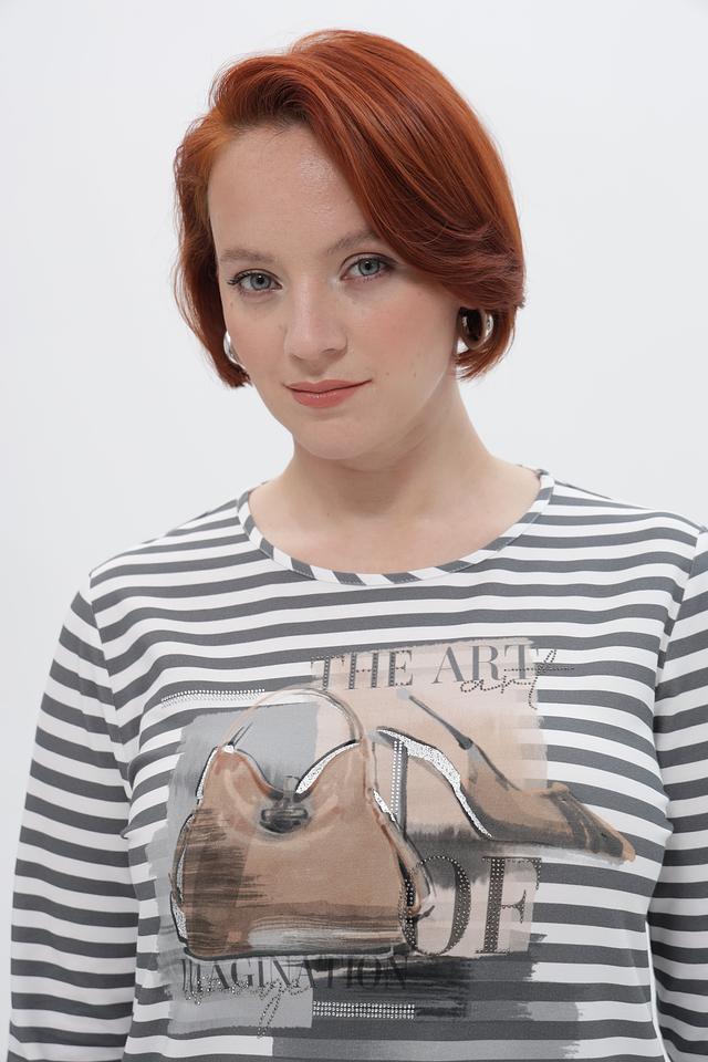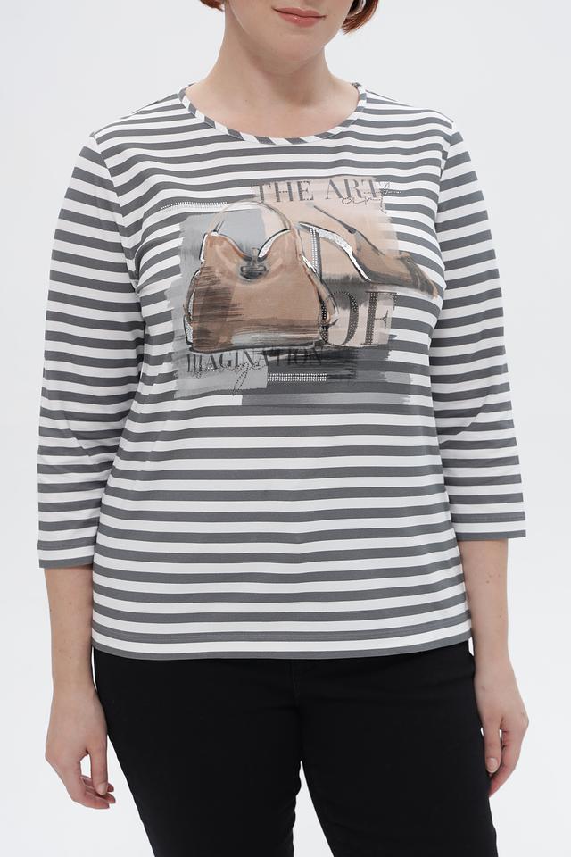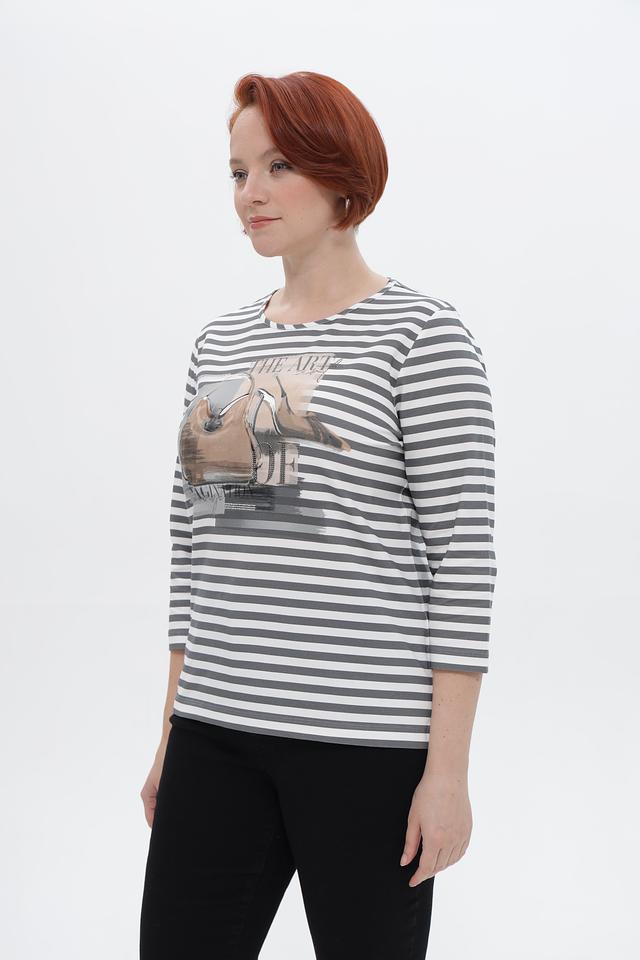 Женская футболка Rabe collection серого цвета с классической полоской и ярким принтом в виде изображения лошади. Модель выполнена из мягкого хлопка с добавлением эластана для комфортной посадки. Состав: хлопок 92%, эластан 8%