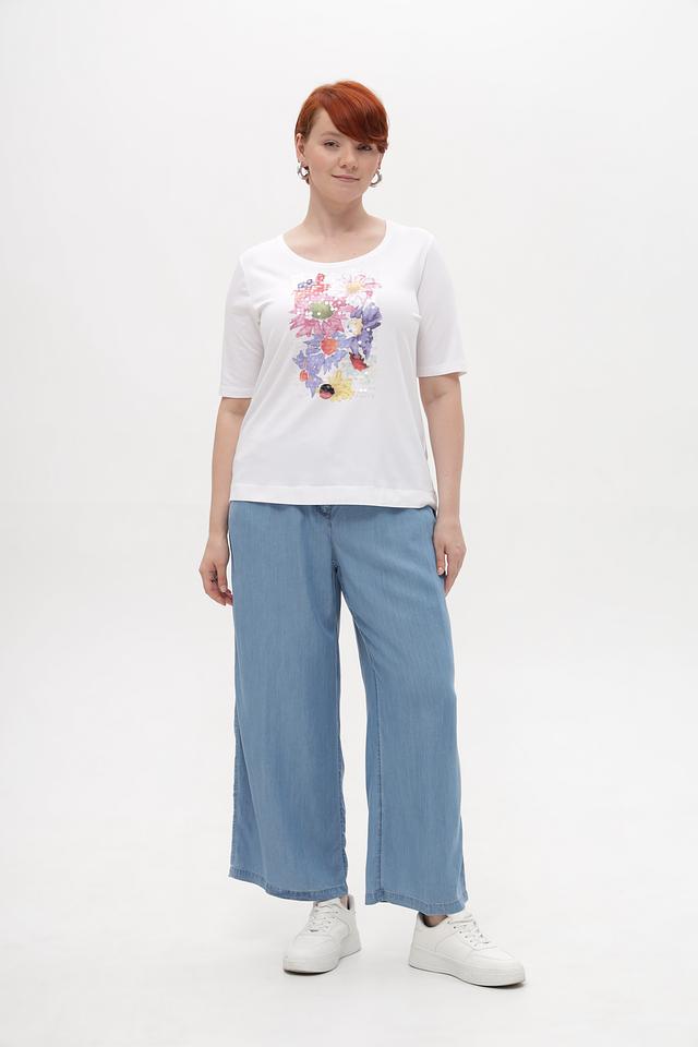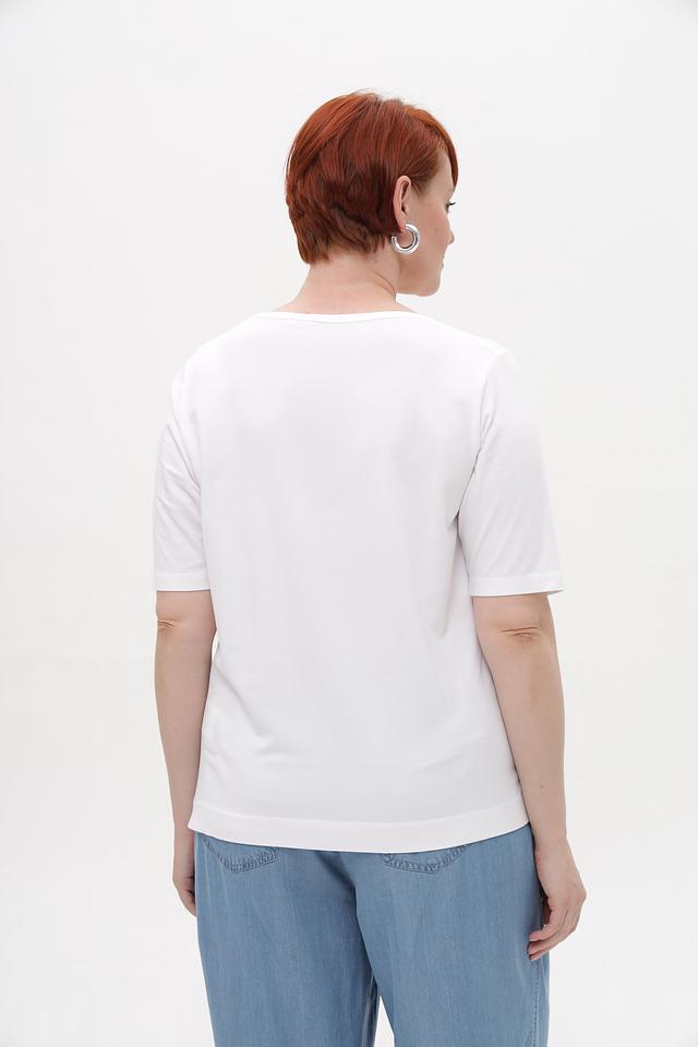Эта белая футболка от Samoon – идеальный выбор для создания легкого и стильного образа. Она выполнена из высококачественного модала, хлопка и эластана, что обеспечивает комфорт и удобство в носке.