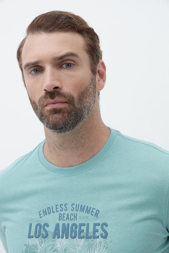 Мятная футболка Sea Barrier с ярким принтом "Los Angeles". Изготовлена из 100% хлопка, обеспечивающего комфорт и воздухопроницаемость. Отличный выбор для повседневного образа. Состав: хлопок 100%