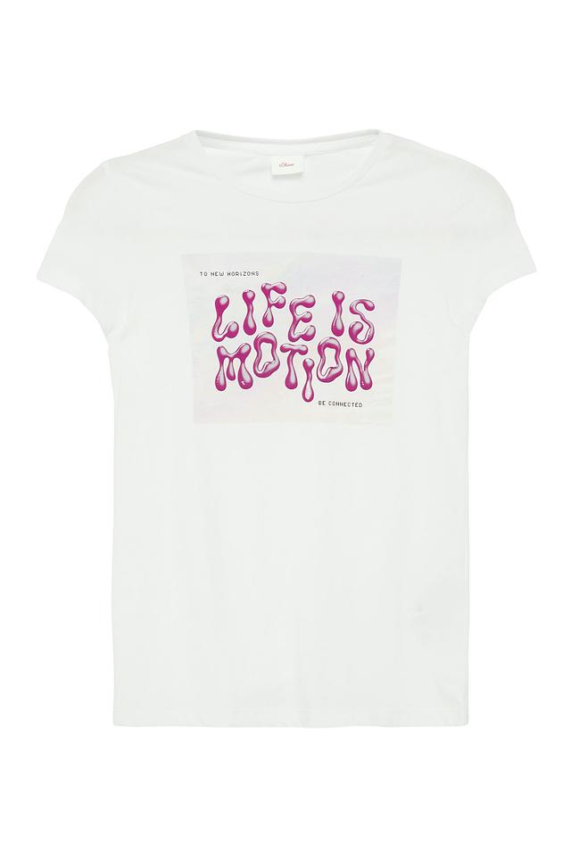 Белая футболка s.Oliver для девочки с ярким принтом "LIFE IS MOTION". Изготовлена из 100% хлопка, обеспечивая комфорт и удобство в носке. Отличный выбор для повседневного гардероба. Состав: хлопок 100%