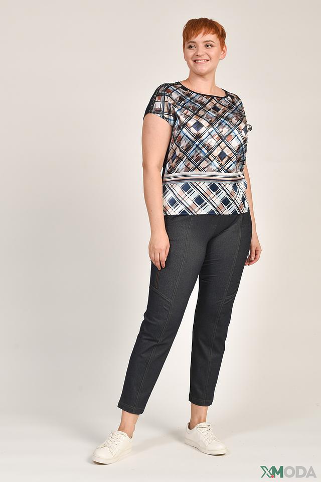 Женская футболка Thomas Rabe синего цвета с ярким клетчатым принтом. Модель выполнена из мягкой вискозы с добавлением эластана, обеспечивающего комфортную посадку. Футболка станет стильным дополнением к вашему гардеробу. Состав: вискоза 92%, эластан 8%