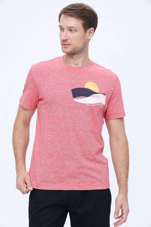 Мужская футболка Tom Tailor розового цвета с полосатым принтом и ярким графическим изображением. Модель выполнена из мягкого хлопка с добавлением полиэстера для комфорта и долговечности. Идеальный выбор для повседневного образа. Состав: хлопок 67%, полиэстер 33%