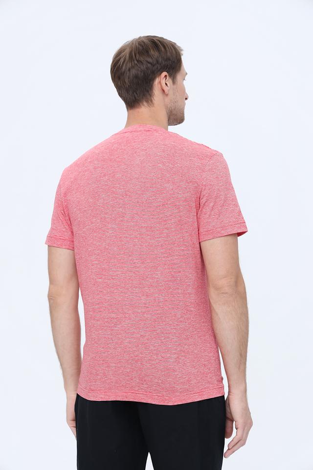 Мужская футболка Tom Tailor – стильное и удобное решение для создания повседневного образа. Футболка выполнена в приятном розовом цвете с мелким белым полосатым принтом.