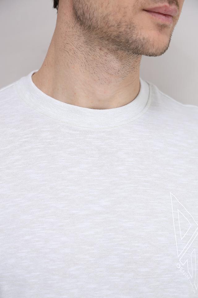 Мужская футболка Tom Tailor denim серого меланжевого цвета с небольшим принтом на груди. Изготовлена из 100% хлопка, обеспечивающего комфорт и воздухопроницаемость. Состав: хлопок 100%