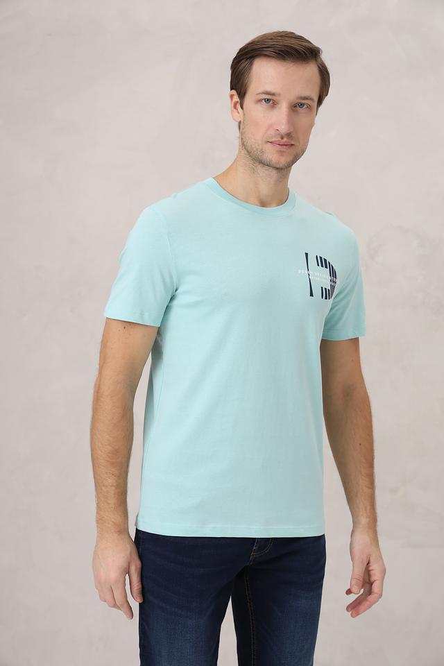 Мужская футболка Tom Tailor denim голубого цвета с принтом на груди. Изготовлена из 100% хлопка, обеспечивающего комфорт и воздухопроницаемость. Отличный выбор для повседневного образа. Состав: хлопок 100%