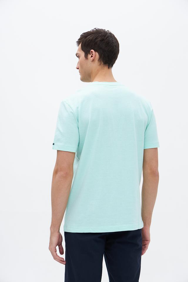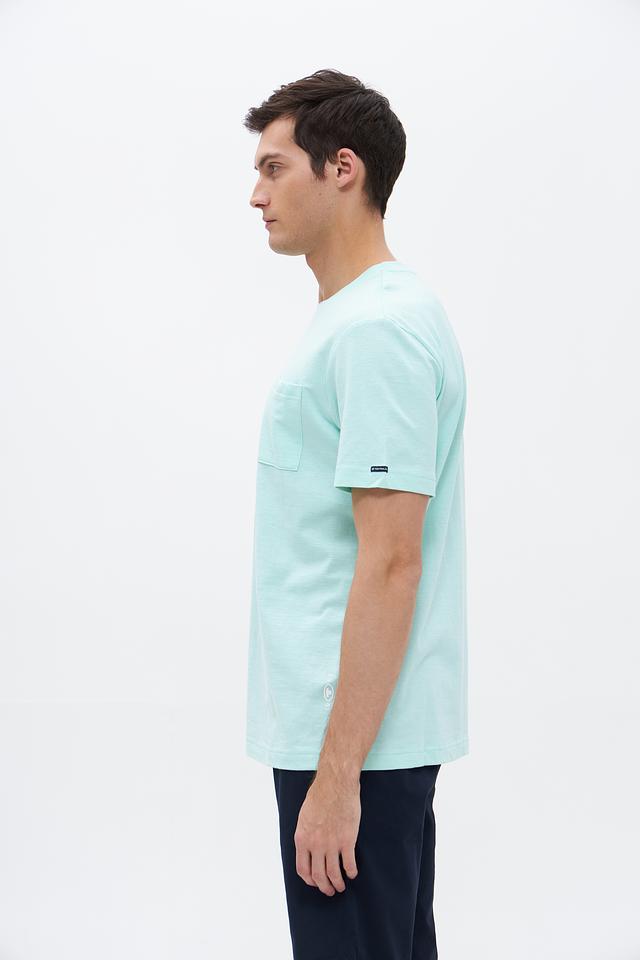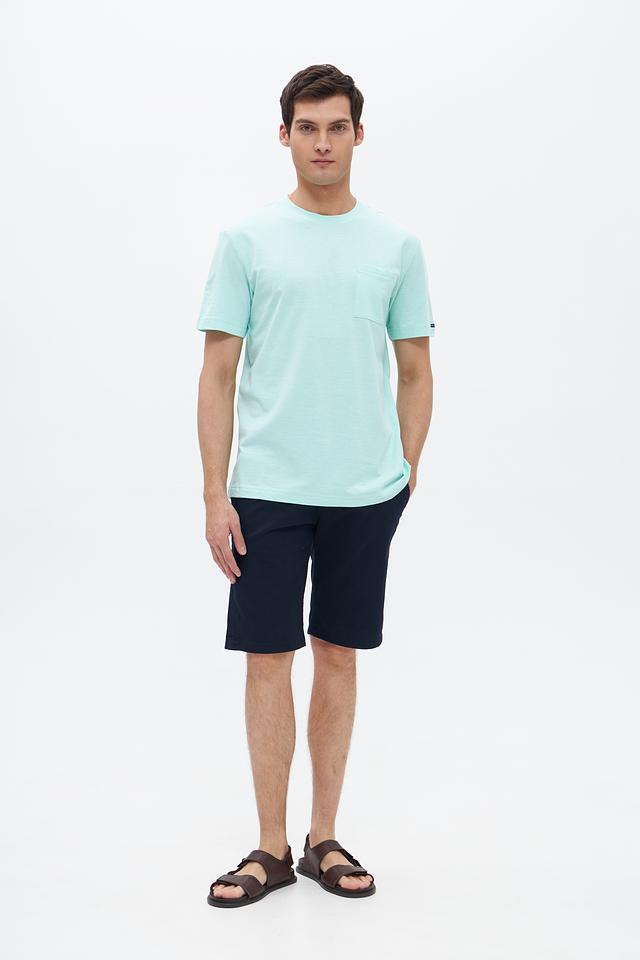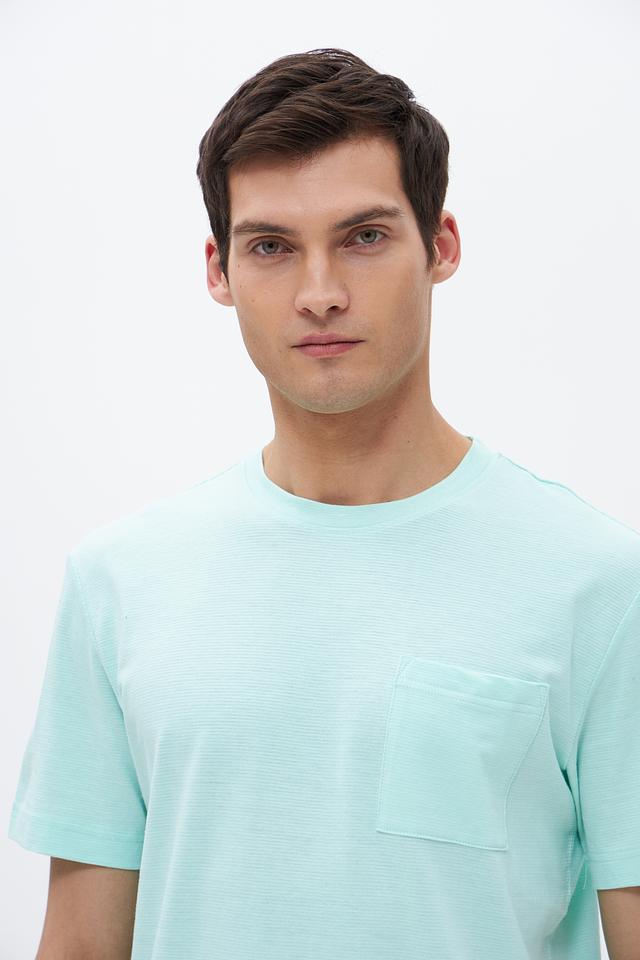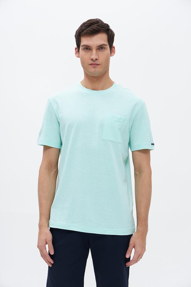 Футболка имеет классический прямой крой, который обеспечивает комфортную посадку по фигуре. Короткие рукава и круглый вырез горловины делают ее универсальной для различных стилей. Нагрудный карман не только добавляет практичности, но и служит стильным акцентом.