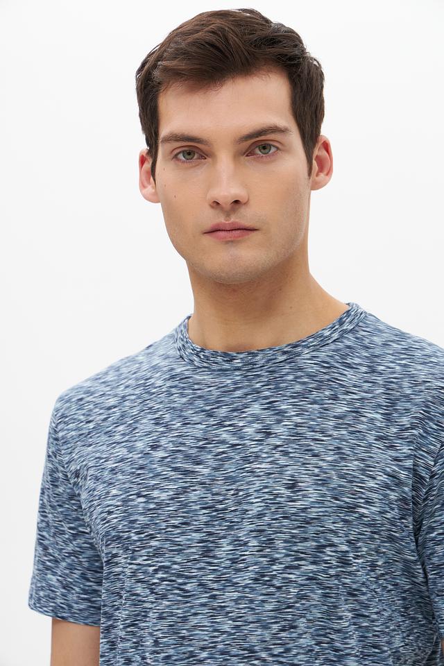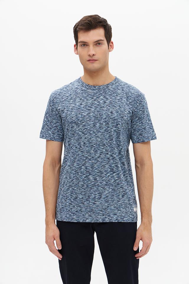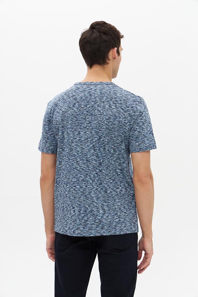 Футболка имеет классический прямой крой, который подходит для любого типа фигуры. Меланжевая текстура придает ей современный и стильный вид. Короткие рукава делают ее идеальным выбором для теплой погоды.