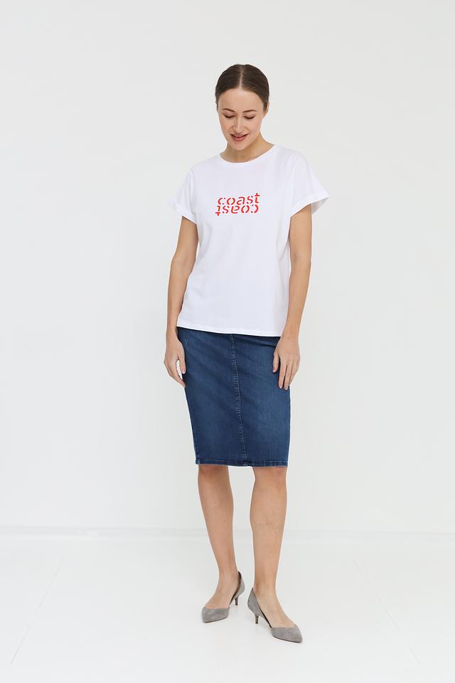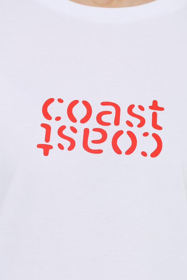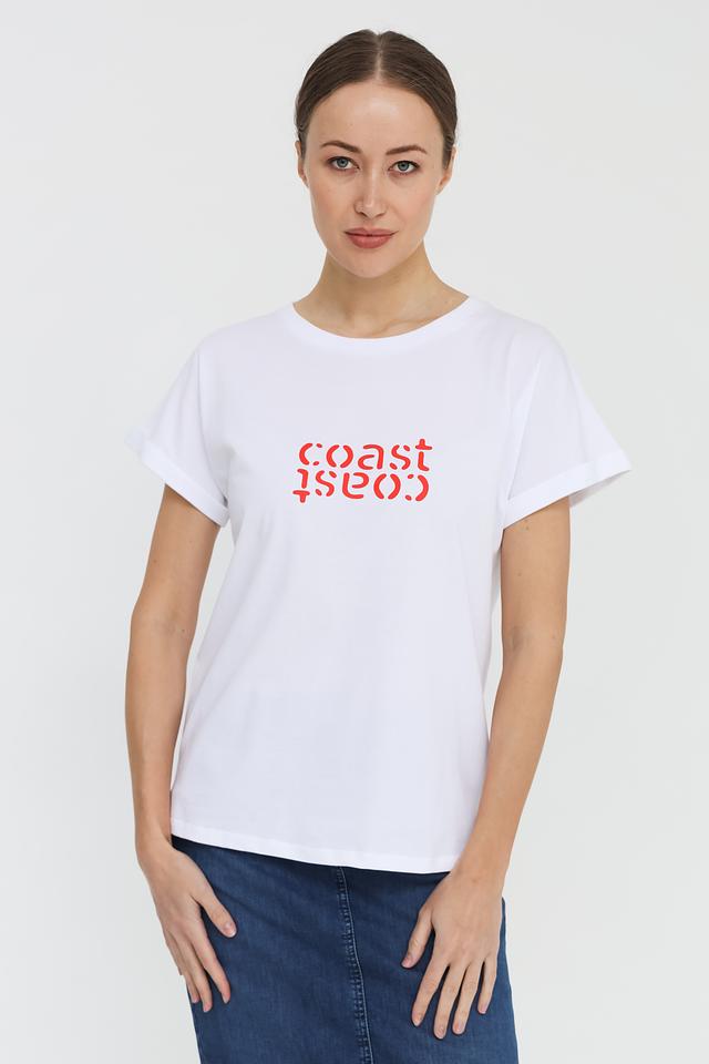 Эта стильная футболка от UNQ выполнена в белом цвете и украшена оригинальным принтом "coast" в красных тонах. Футболка имеет прямой крой и короткие рукава, что делает ее удобной для повседневной носки.