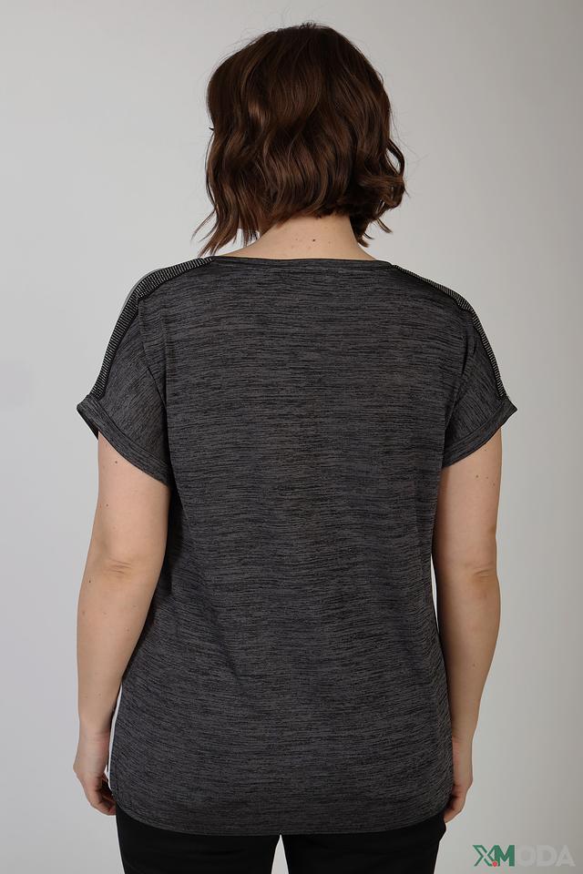 Модель имеет свободный крой, который обеспечивает комфорт и свободу движений. Короткие рукава и округлый вырез горловины делают футболку универсальной и подходящей для различных образов. Декоративная отделка на плечах добавляет изюминку и оригинальность.