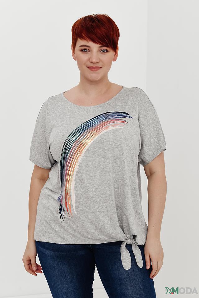 Женская футболка Via Appia серого цвета с ярким принтом радуги и завязками по бокам. Изготовлена из мягкой вискозы с добавлением эластана для комфорта и свободы движений. Состав: вискоза 90%, эластан 10%