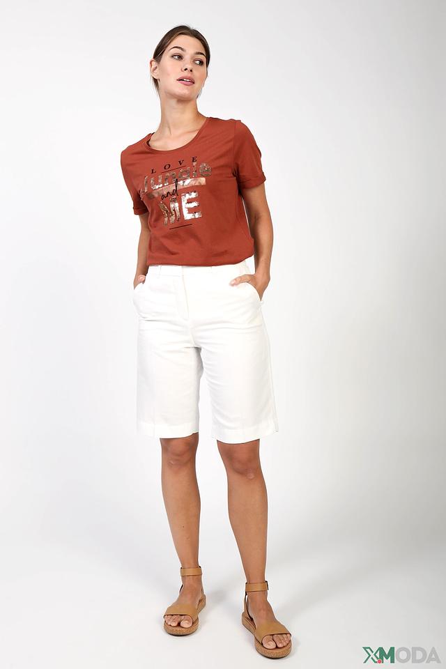 Женская футболка Via Appia терракотового цвета с эффектным декором из пайеток. Модель выполнена из 100% хлопка, обеспечивая комфорт и удобство в носке. Стильный принт добавит образу оригинальности. Состав: хлопок 100%