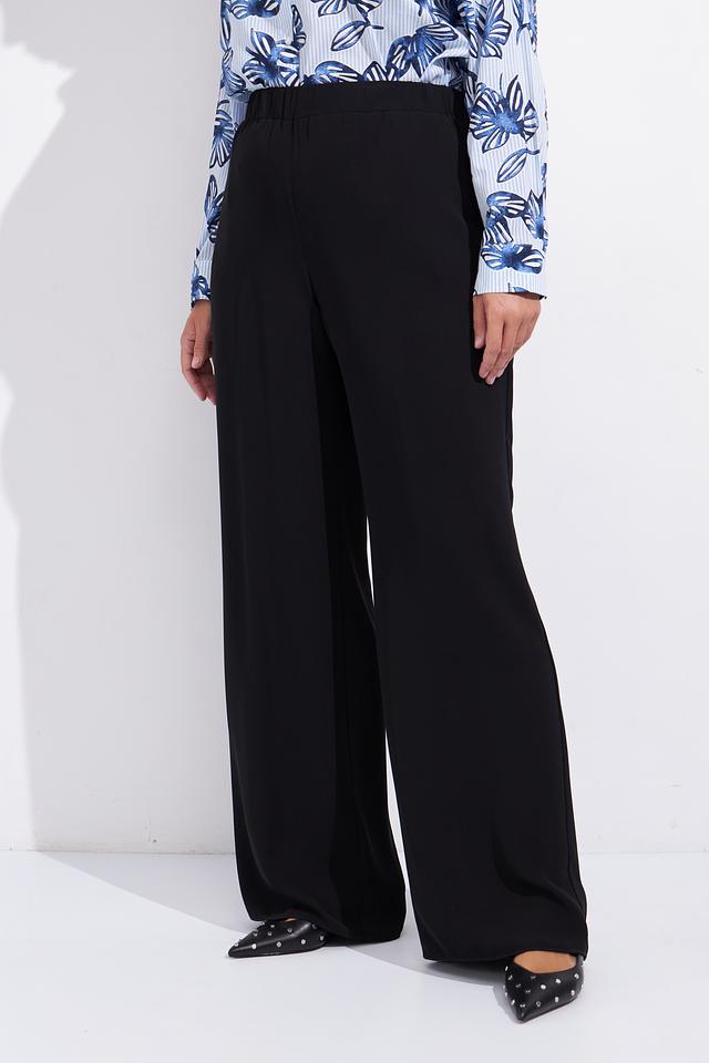 Чёрные брюки Gaia палаццо из 100% полиэстера — элегантный выбор для создания стильного образа. Прямой крой и высокая посадка визуально удлиняют силуэт, а эластичный пояс обеспечивает комфортную посадку. Состав: полиэстер 100%