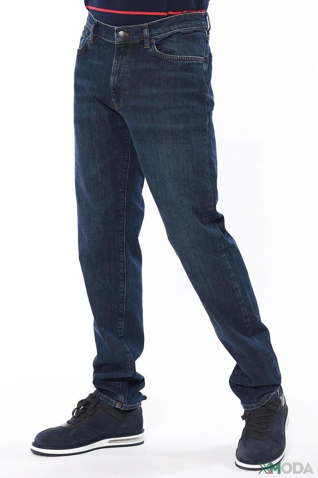Джинсы имеют прямой крой, обеспечивающий комфортную посадку по фигуре. Ткань отличается высокой износостойкостью и приятна на ощупь. На заднем кармане расположен фирменный логотип бренда, выполненный в виде декоративной нашивки.