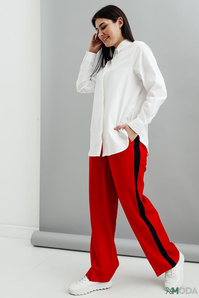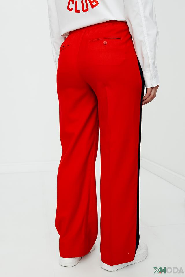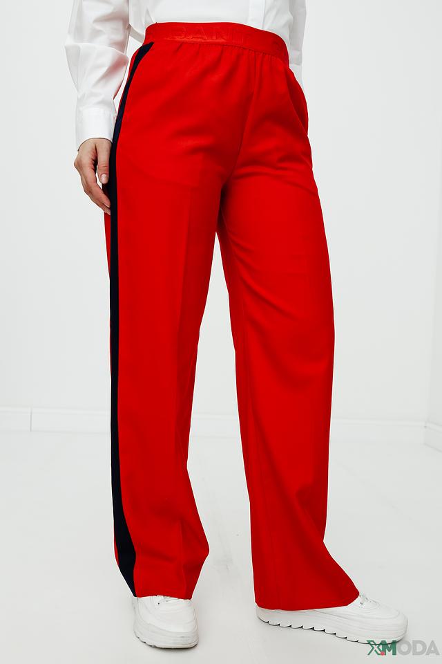 Женские брюки Gant красного цвета с боковой чёрной полосой — стильное и удобное решение для повседневной носки. Модель выполнена из смесовой ткани с добавлением шерсти, что обеспечивает комфорт и приятные тактильные ощущения. Состав: шерсть 50%, полиэстер 25%, вискоза 25%