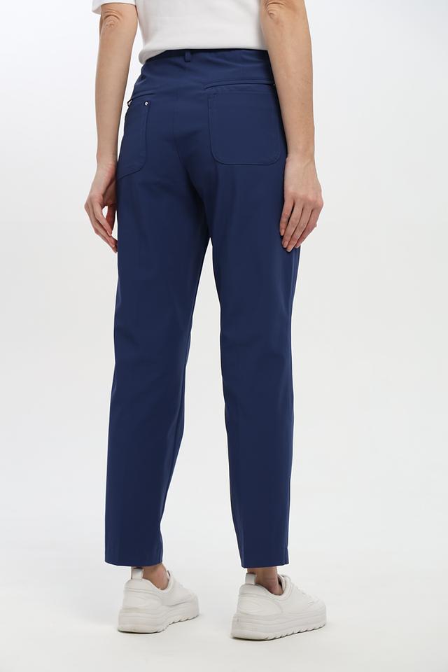 Дизайн брюк дополнен аккуратными карманами спереди и сзади, а также молниями на карманах. Данная модель станет отличным выбором для создания как деловых, так и повседневных образов.