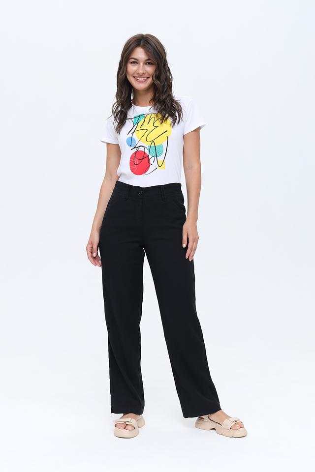 Брюки имеют прямой крой, который обеспечивает свободу движений и комфортную посадку. Состав ткани – 53% лён, 44% хлопок и 3% эластан – гарантирует воздухопроницаемость, мягкость и небольшую эластичность.