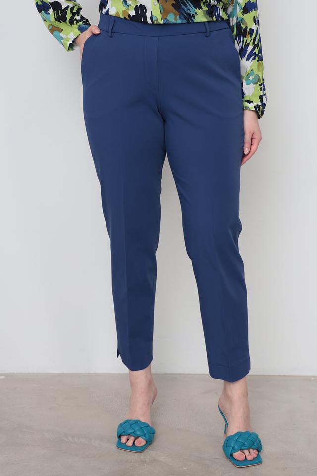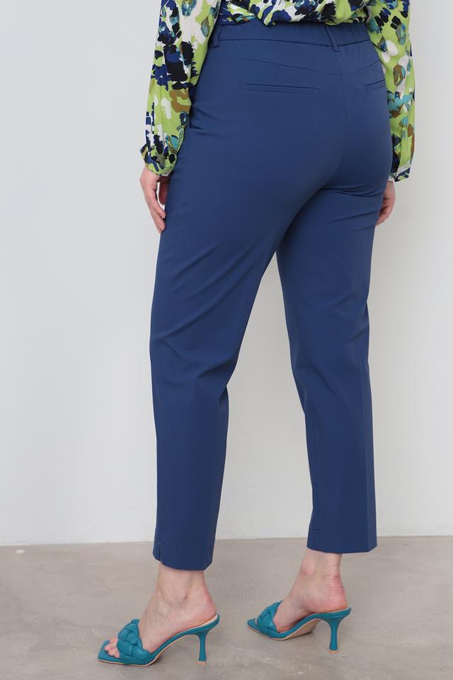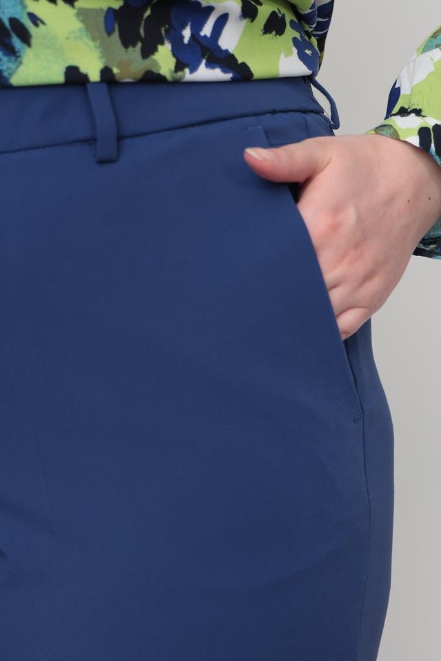 Синие классические брюки Gardeur из смесовой ткани с добавлением эластана. Модель прямого кроя с застежкой на молнию и пуговицу, имеет стандартную посадку и длину 7/8. Состав: полиамид 48%, хлопок 42%, эластан 10%