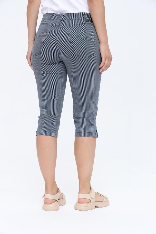 Представляем стильные брюки капри от бренда Gardeur. Эта модель выполнена в классическом дизайне с вертикальной полоской синего и белого цвета, что делает их универсальным дополнением к любому гардеробу.