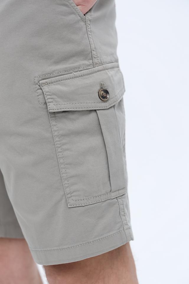 Дизайн шорт дополнен функциональными карманами, включая накладные карманы на бедрах, что делает их практичными для повседневного использования. Застежка на пуговицу и молнию обеспечивает надежную фиксацию. Данная модель станет отличным выбором для создания непринужденного и стильного образа в теплую погоду.