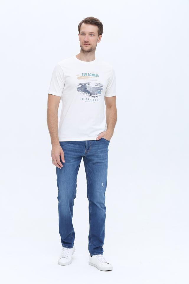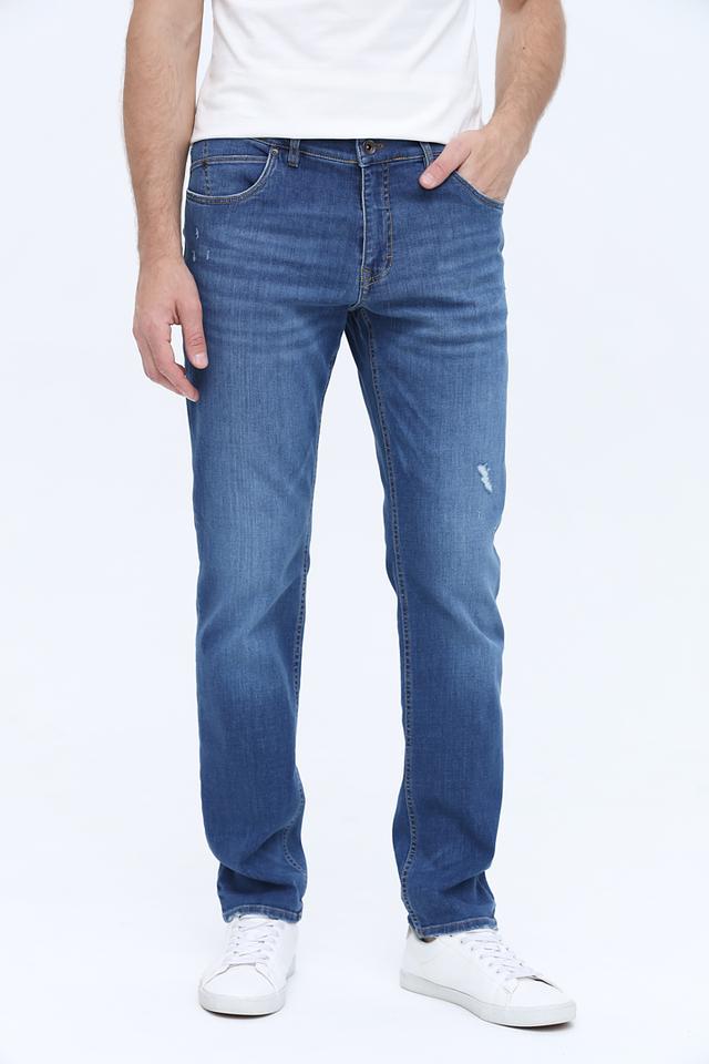 Джинсы имеют прямой крой, обеспечивающий свободу движений и комфорт в повседневной носке. Декоративные потертости и небольшие разрывы придают им современный и слегка небрежный вид.