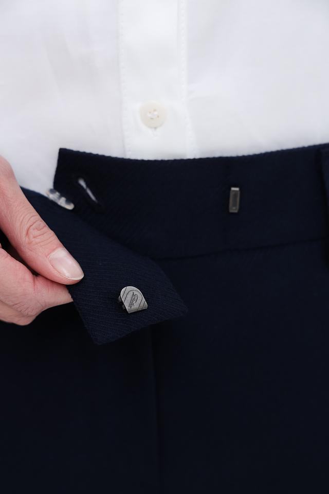 Темно-синий цвет брюк делает их универсальными и легко сочетаемыми с различными элементами гардероба. На задних карманах предусмотрены аккуратные детали. Эти брюки станут незаменимой вещью в вашем гардеробе, сочетая в себе стиль, комфорт и практичность.