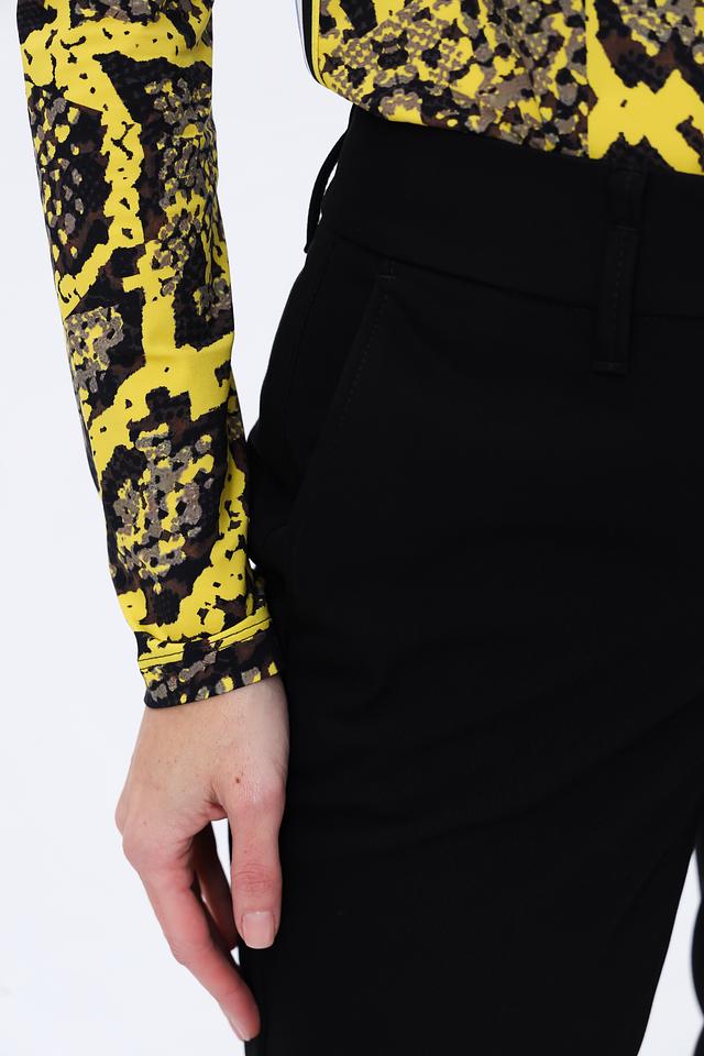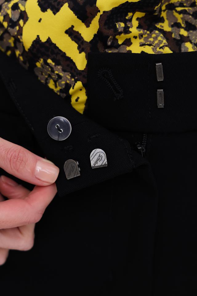 Брюки имеют прямой крой, обеспечивающий комфортную посадку по фигуре. Изготовлены из высококачественного материала, состоящего из полиэстера (69%), вискозы (24%) и эластана (7%). Такое сочетание обеспечивает приятные тактильные ощущения, хорошую износостойкость и небольшую эластичность.